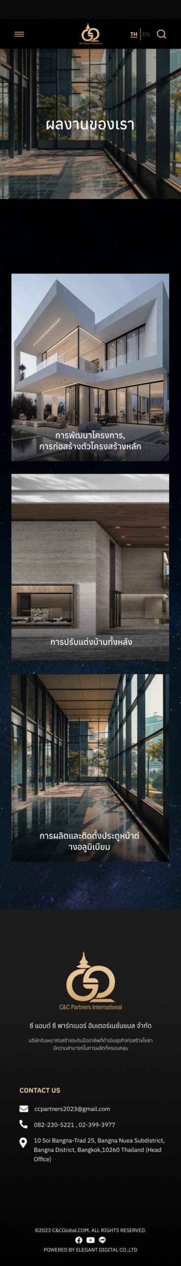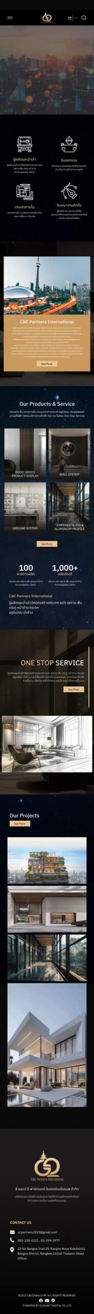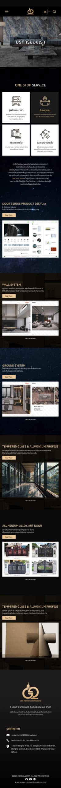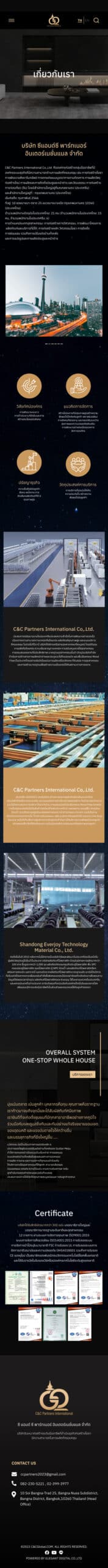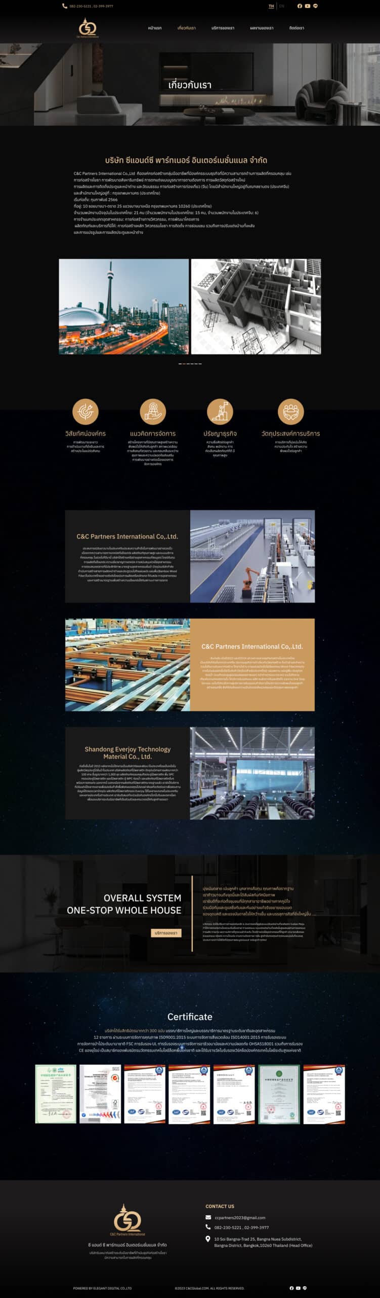 The C&C GLOBAL website is designed with a clear structure, dividing sections into