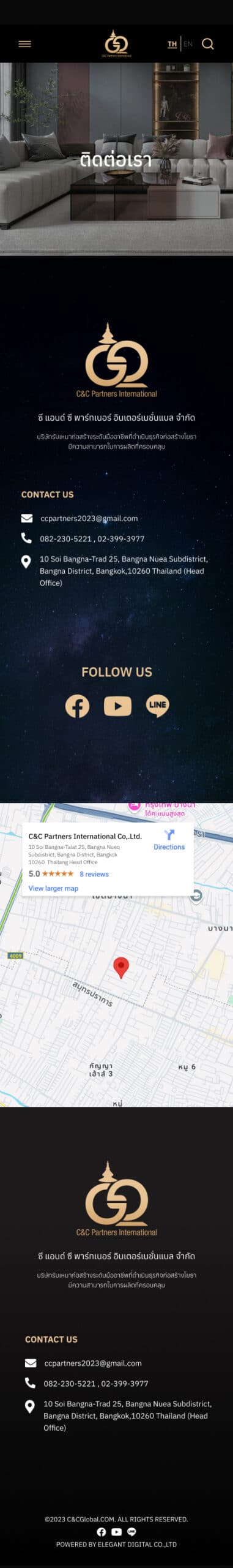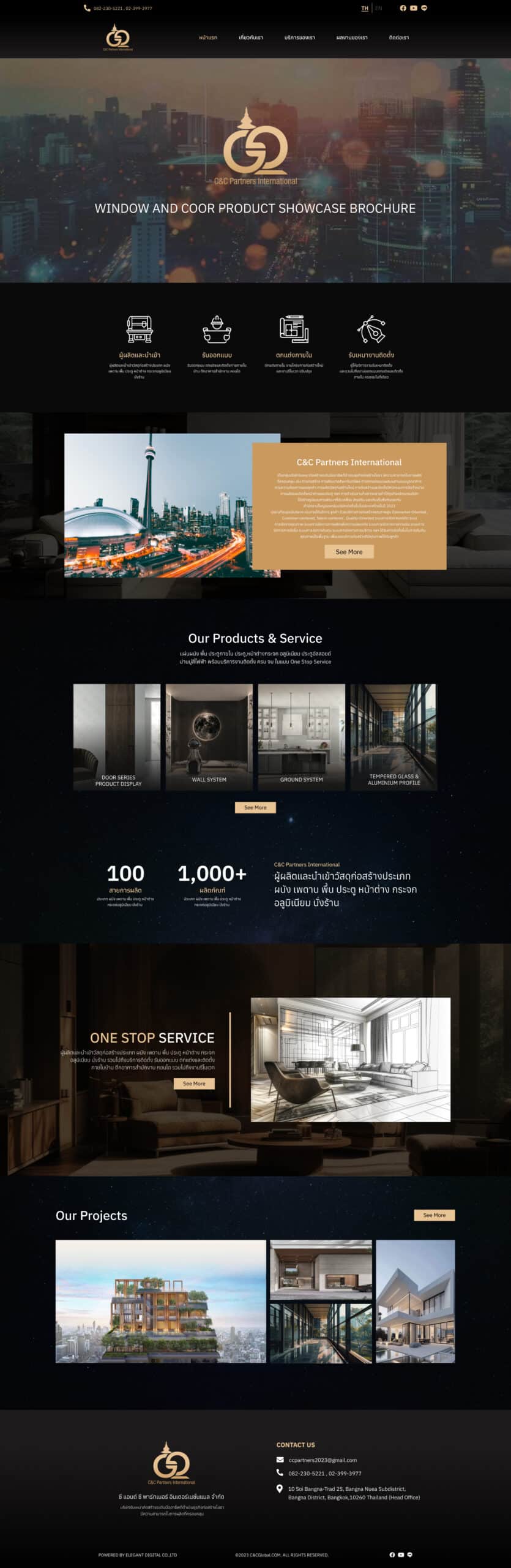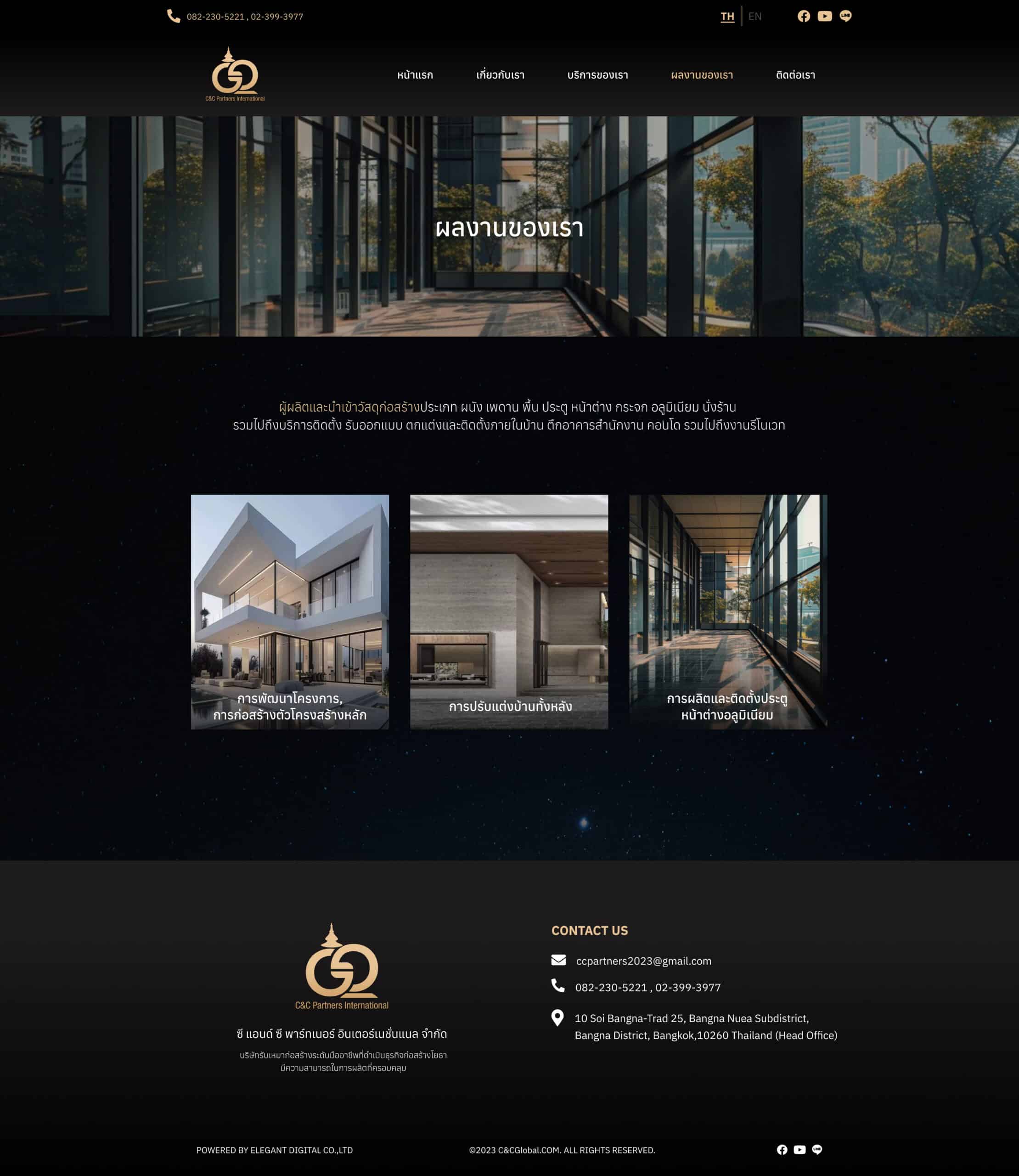 The C&C GLOBAL website is designed with a clear structure, dividing sections into
