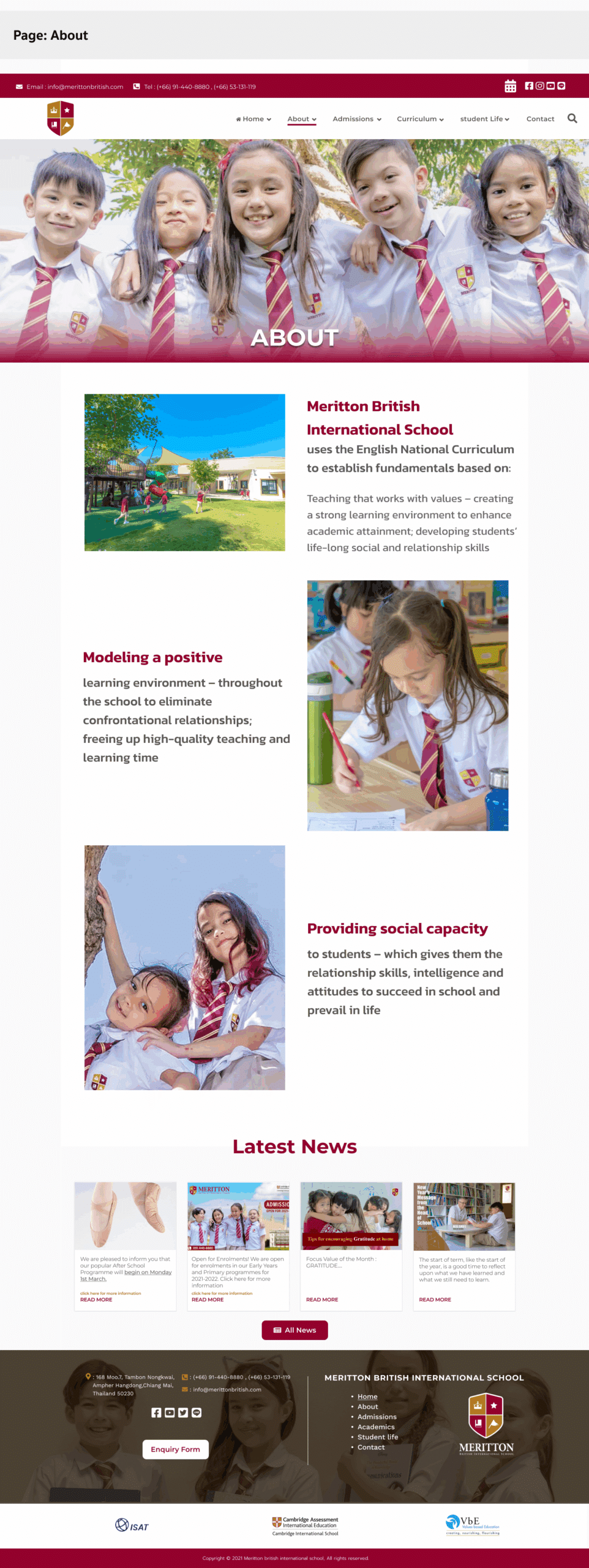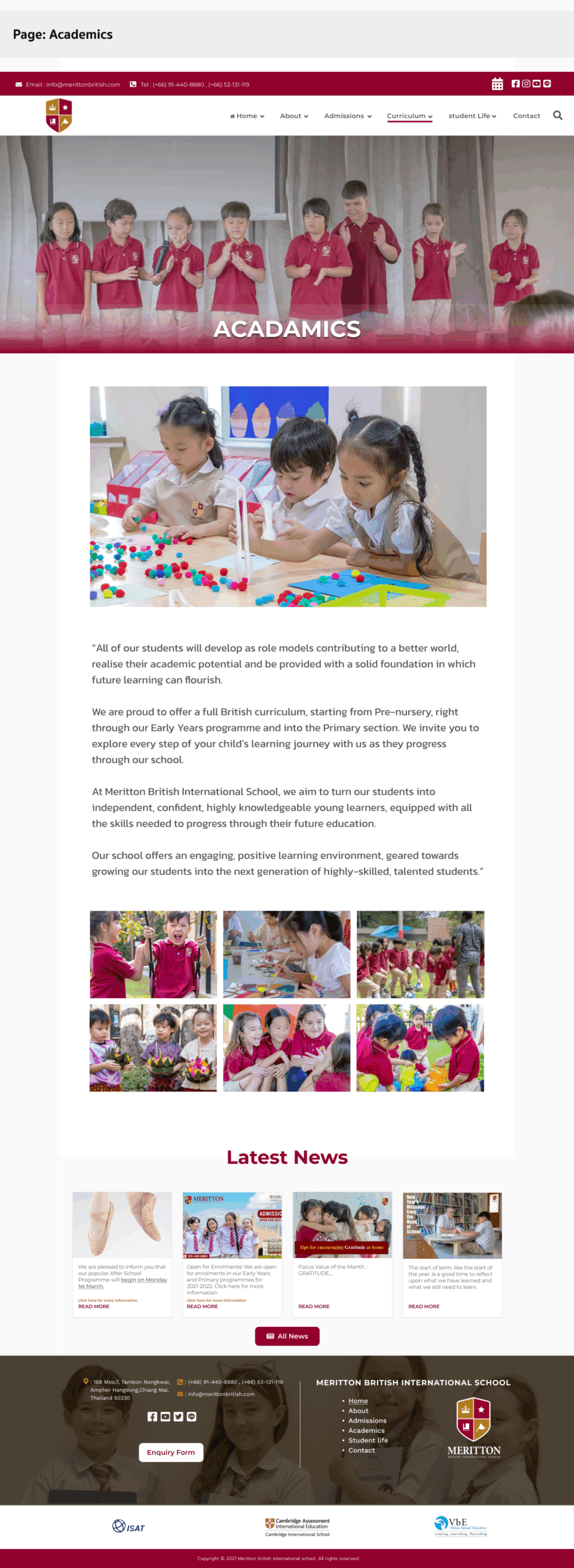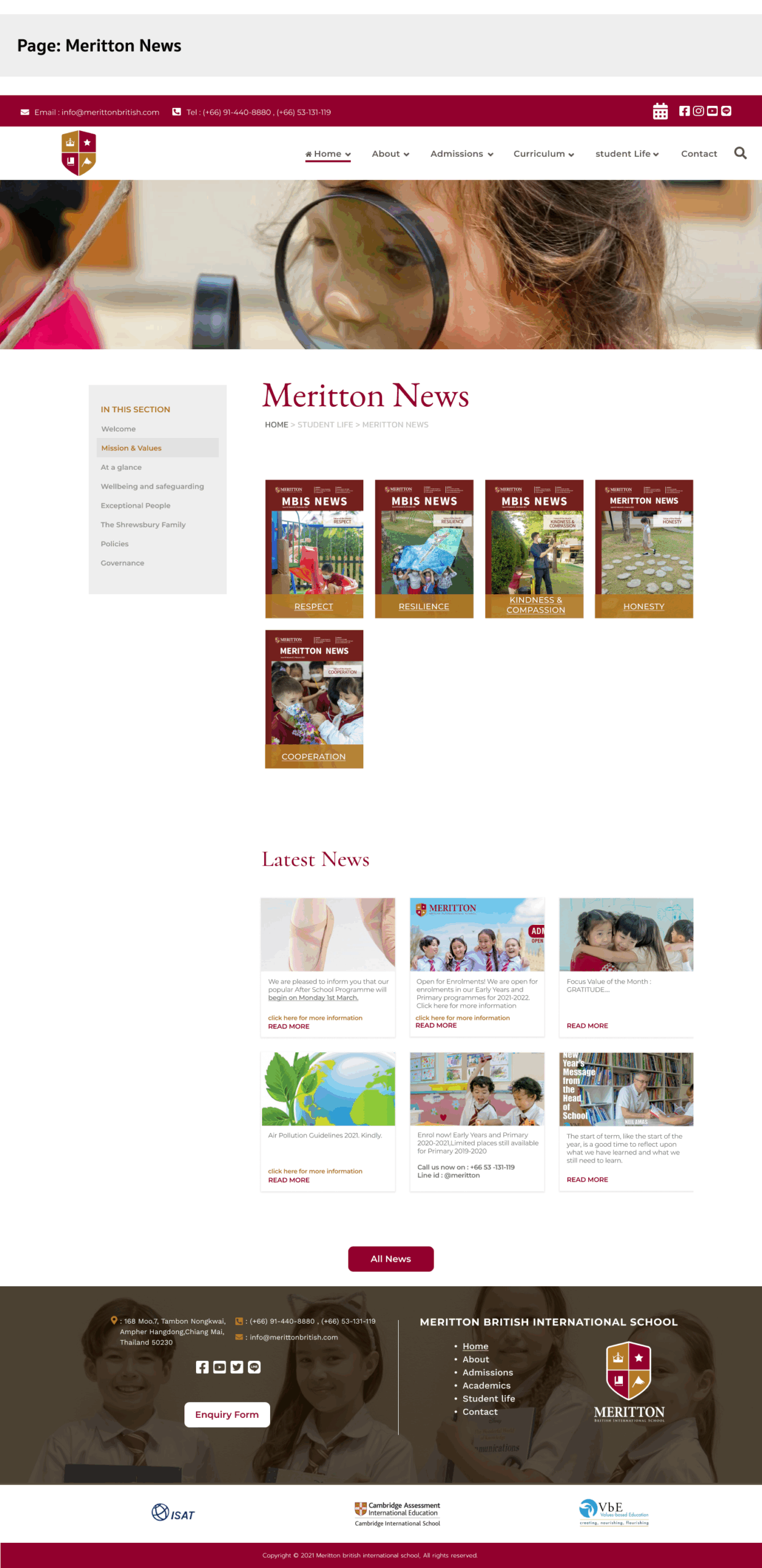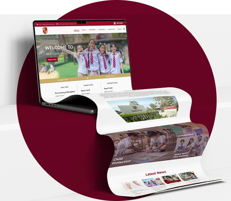 The Meritton British International School website is structured to help users understand the school’s mission and values at first glance.