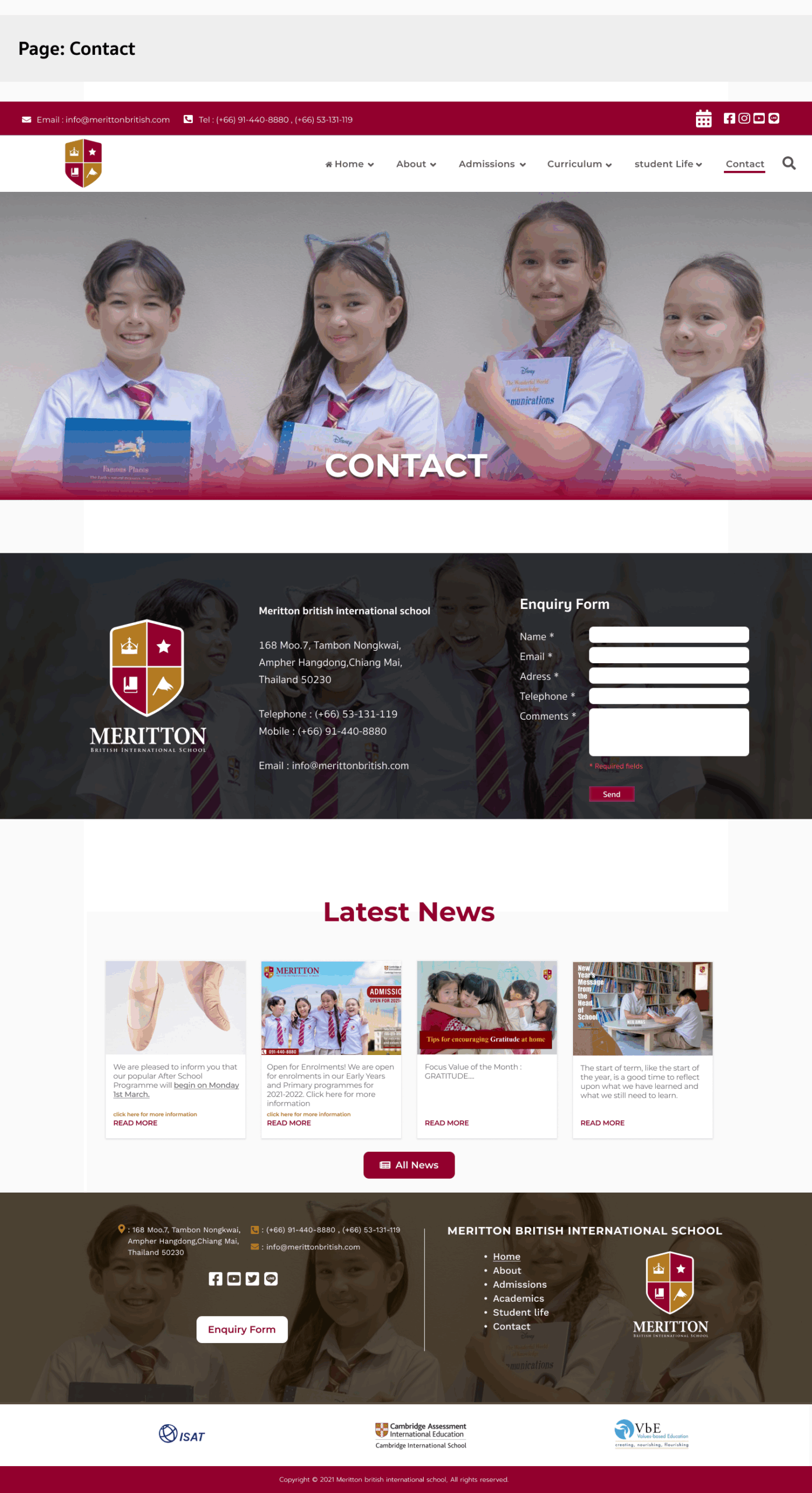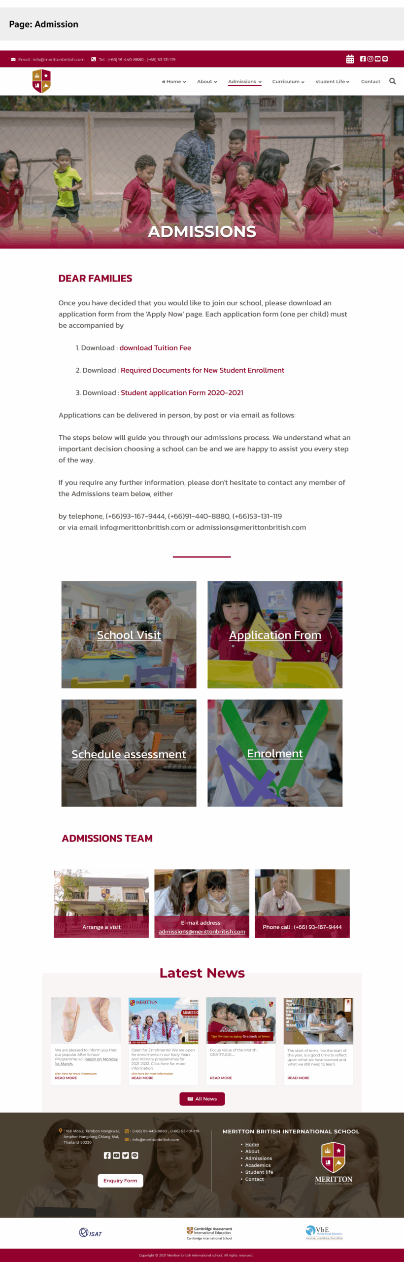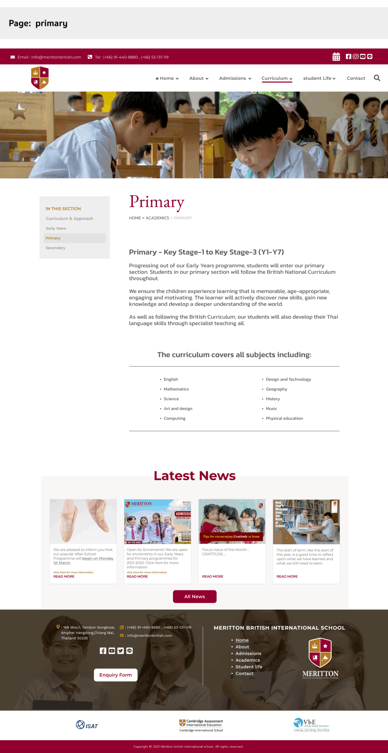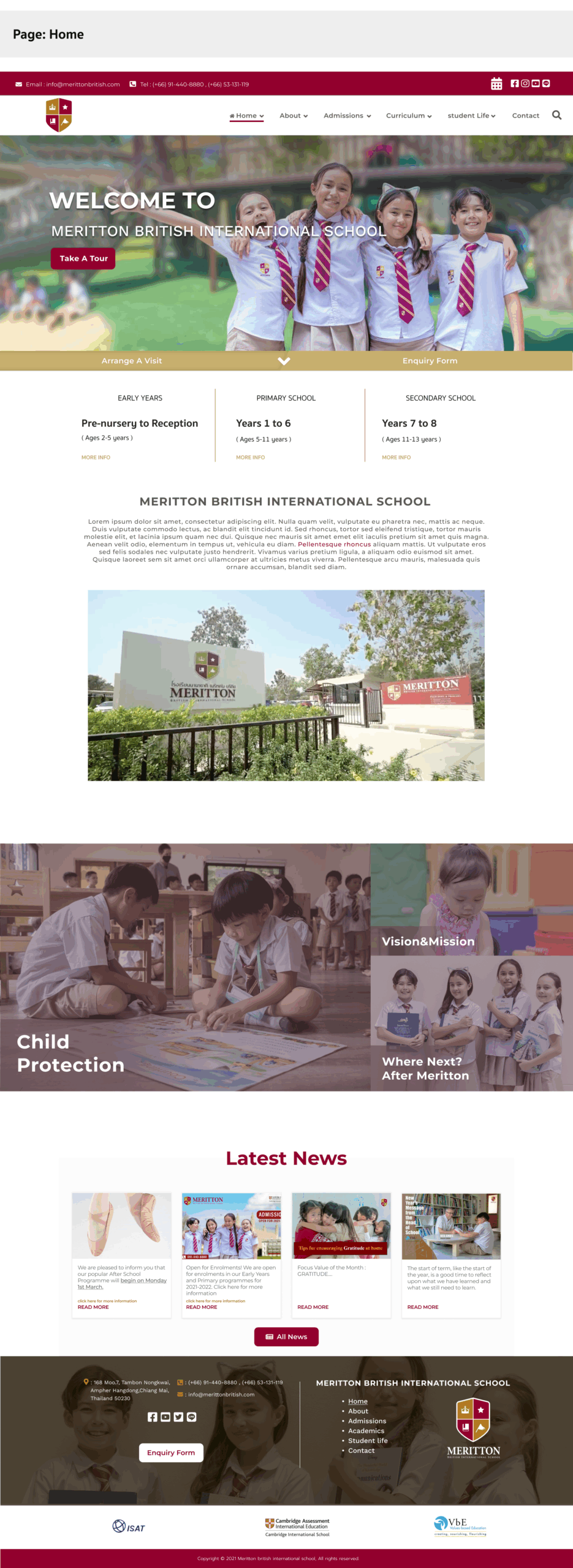 The Meritton British International School website is structured to help users understand the school’s mission and values at first glance.
