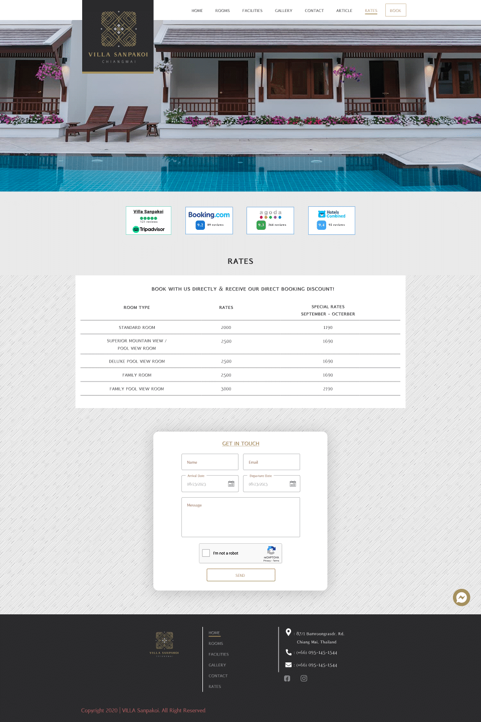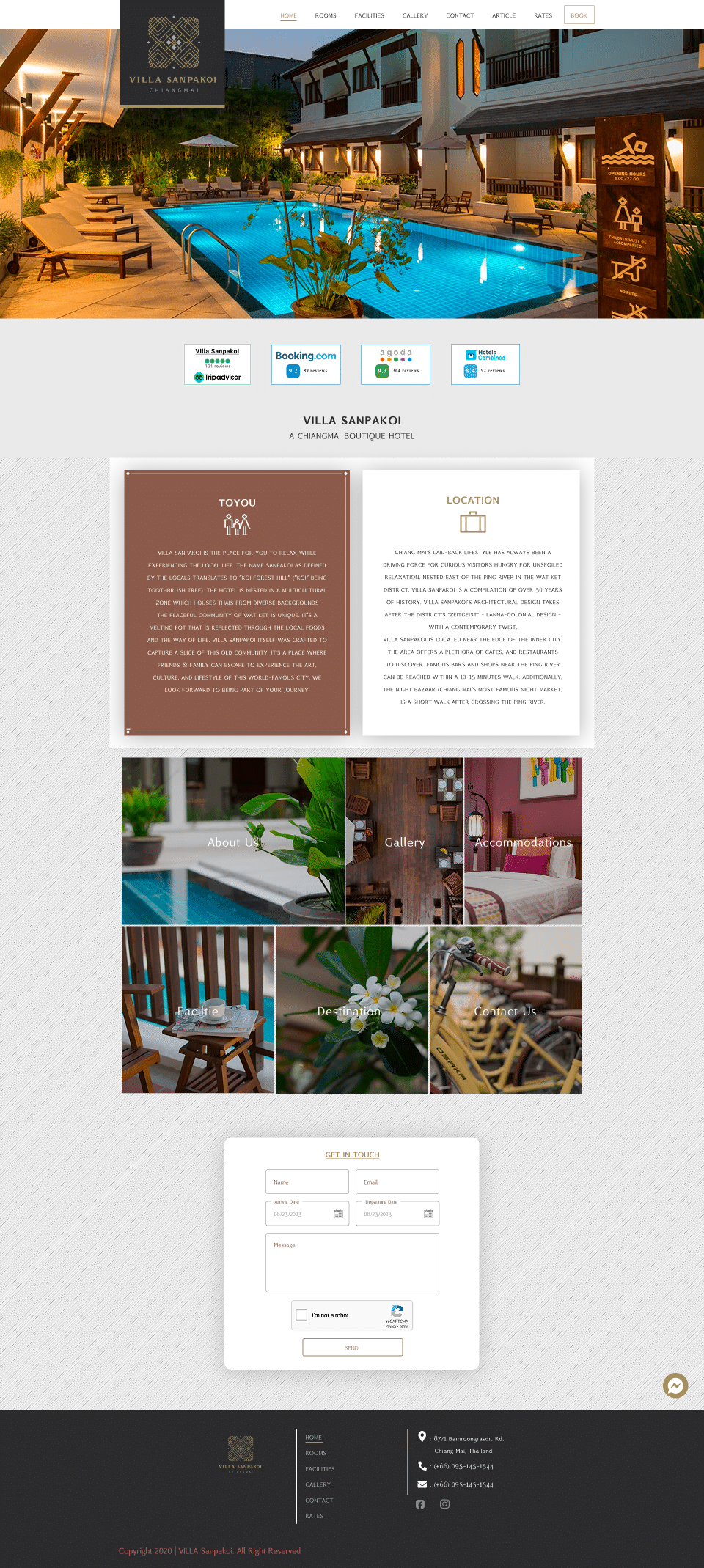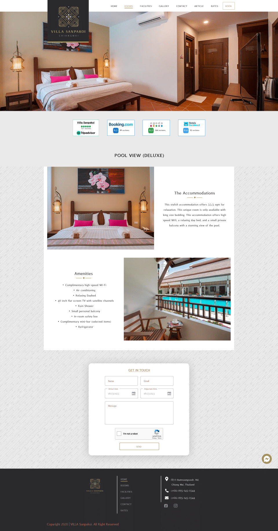 The Villa Sanpakoi website is designed to immediately convey the boutique hotel’s character