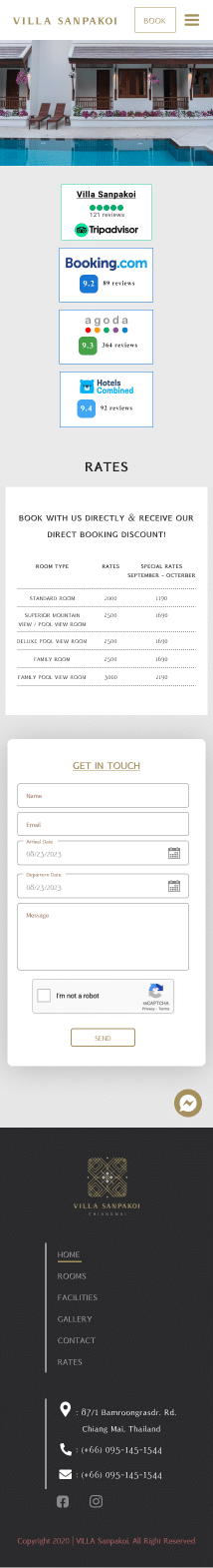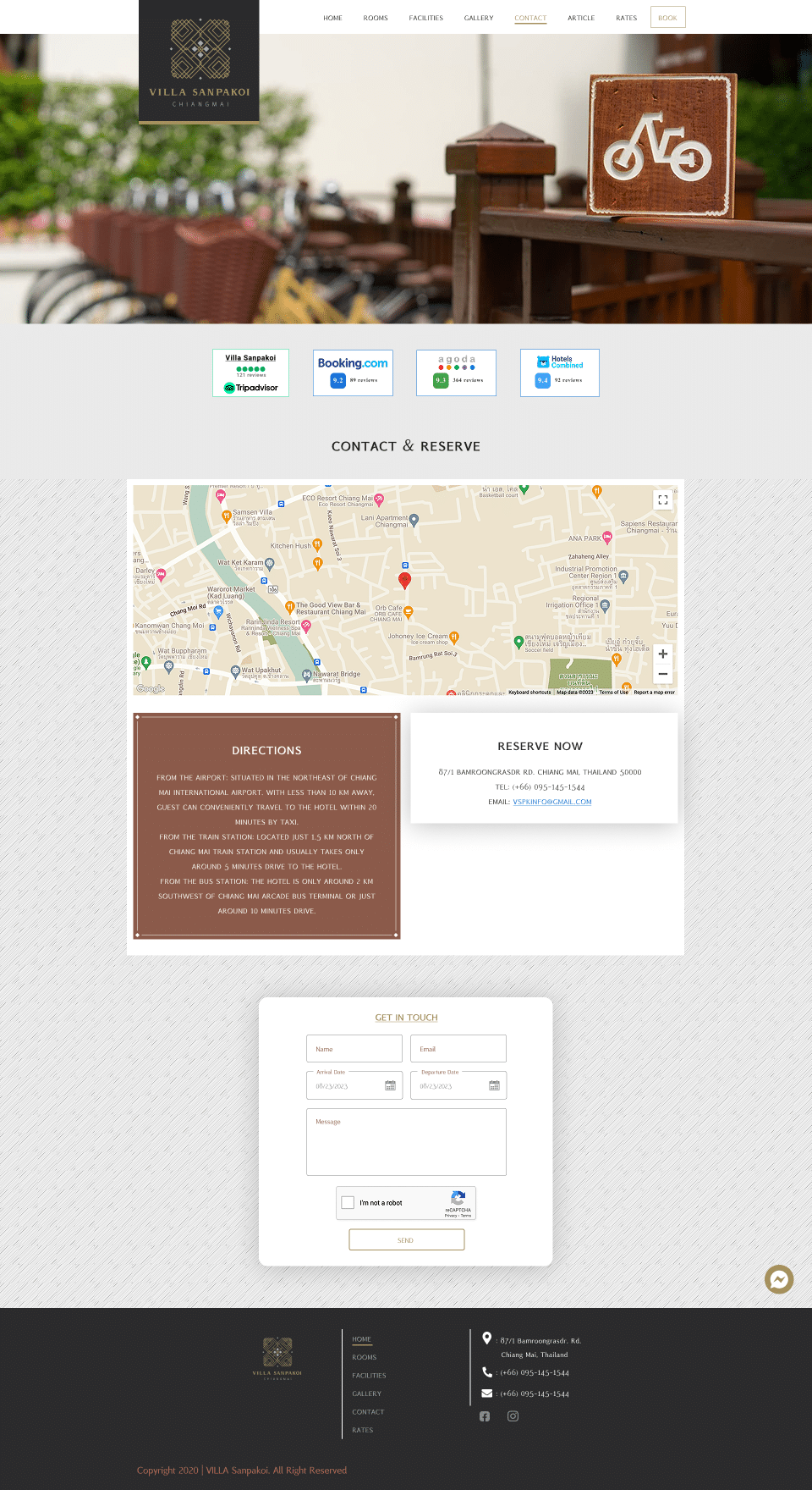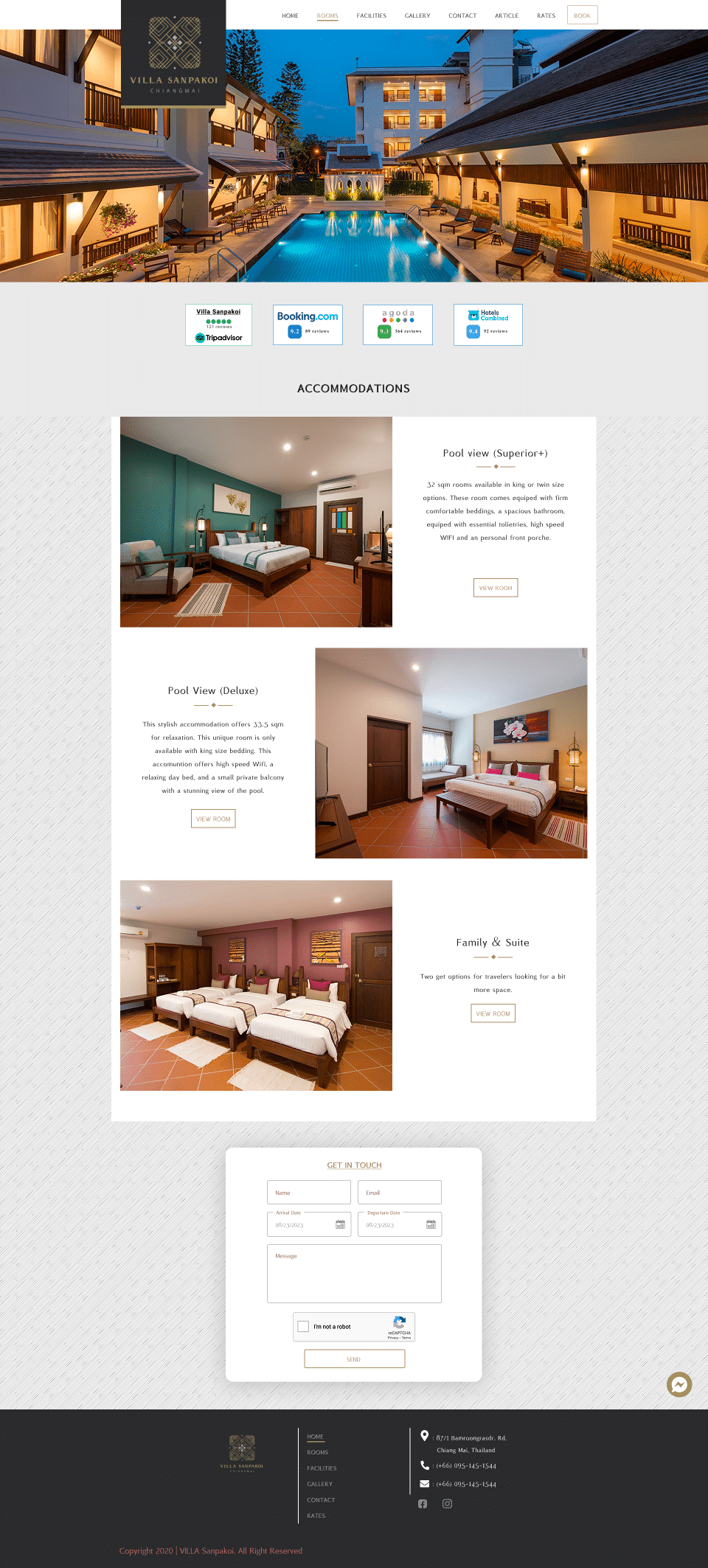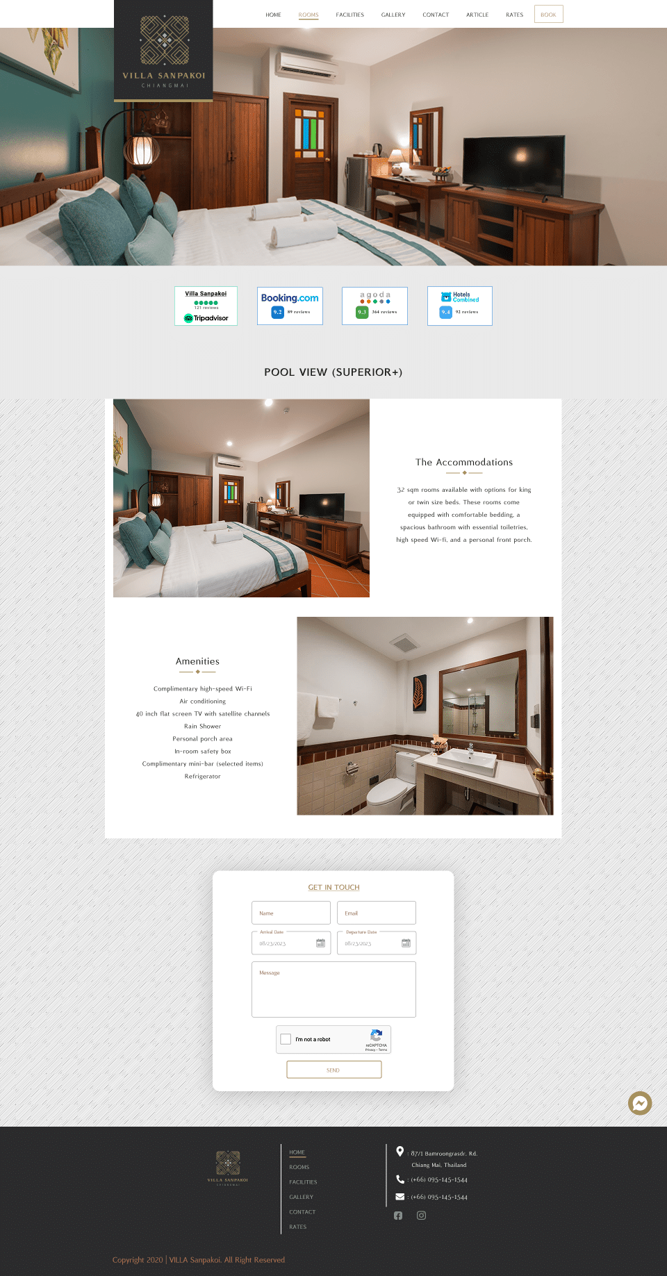 The Villa Sanpakoi website is designed to immediately convey the boutique hotel’s character