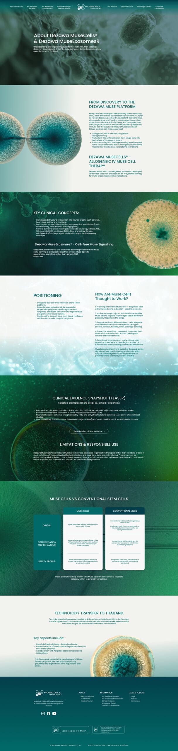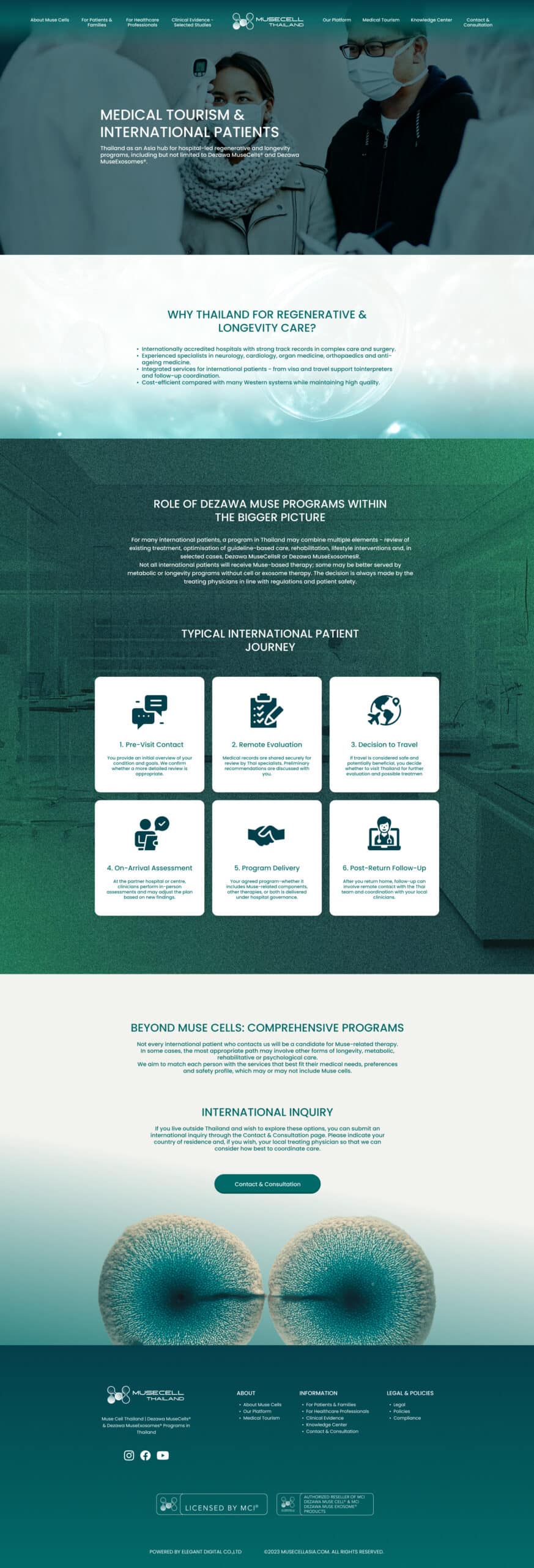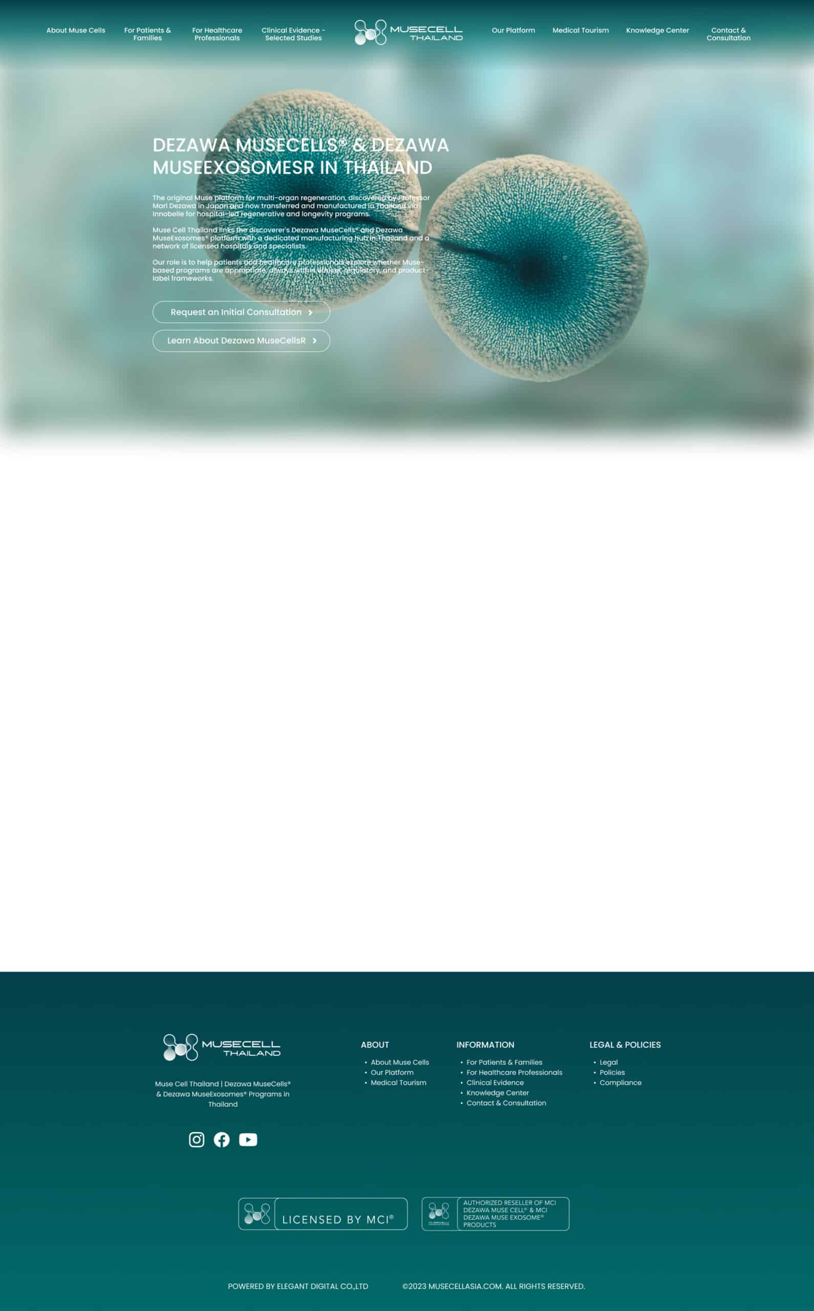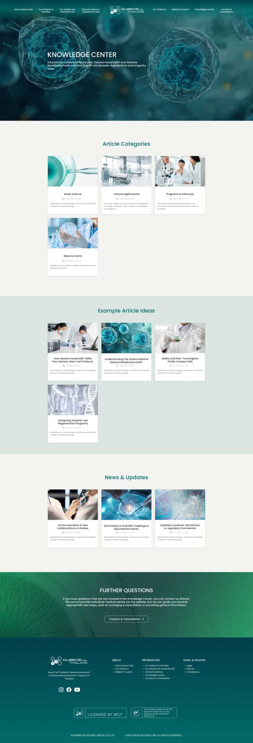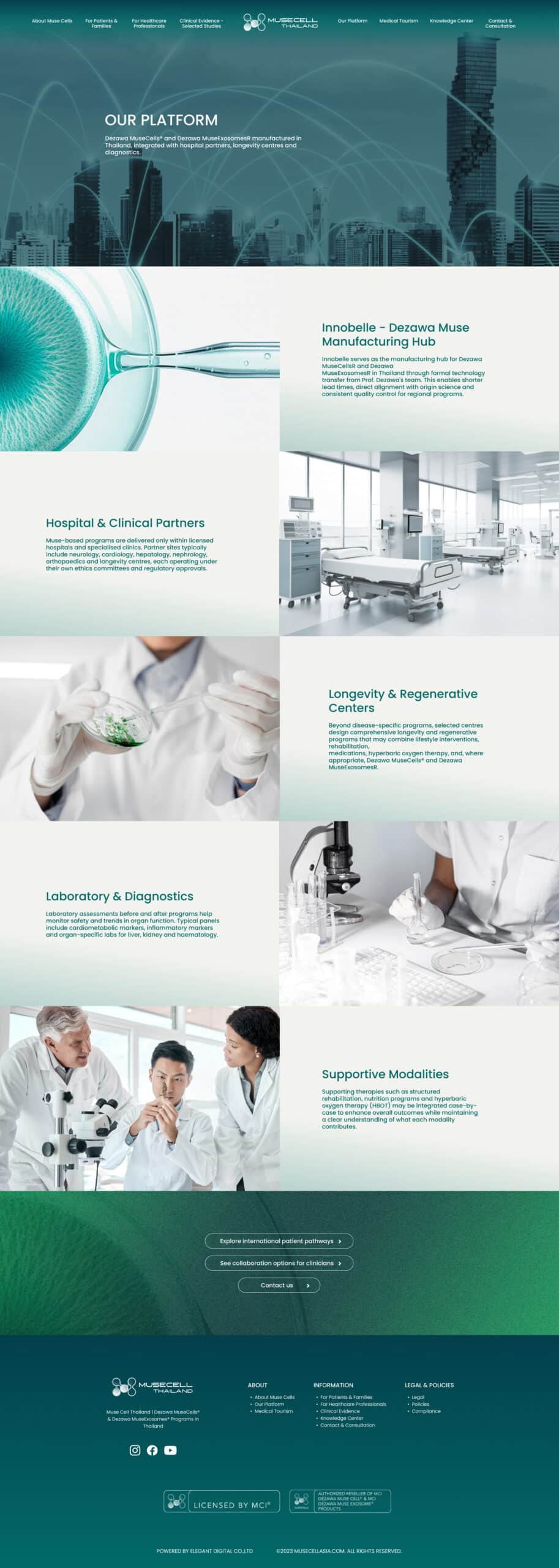 โครงสร้างเว็บไซต์เป็นแบบลำดับชั้น (Hierarchy) จัดหมวดหมู่เนื้อหา เช่น เทคโนโลยีเซลล์ การรักษา และข้อมูลองค์กร