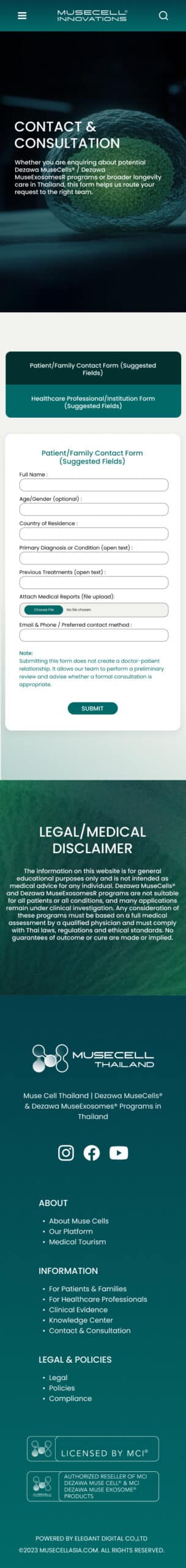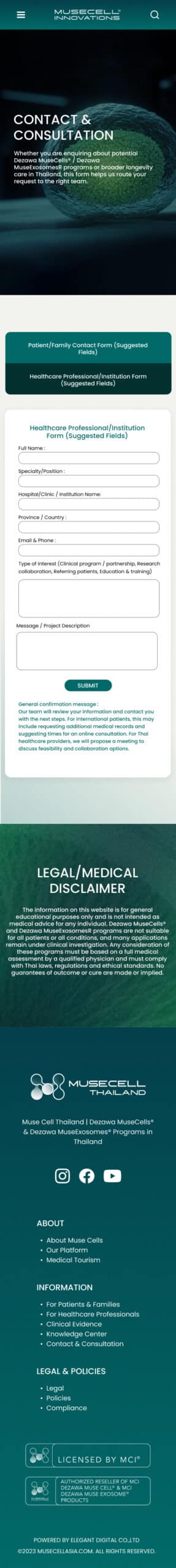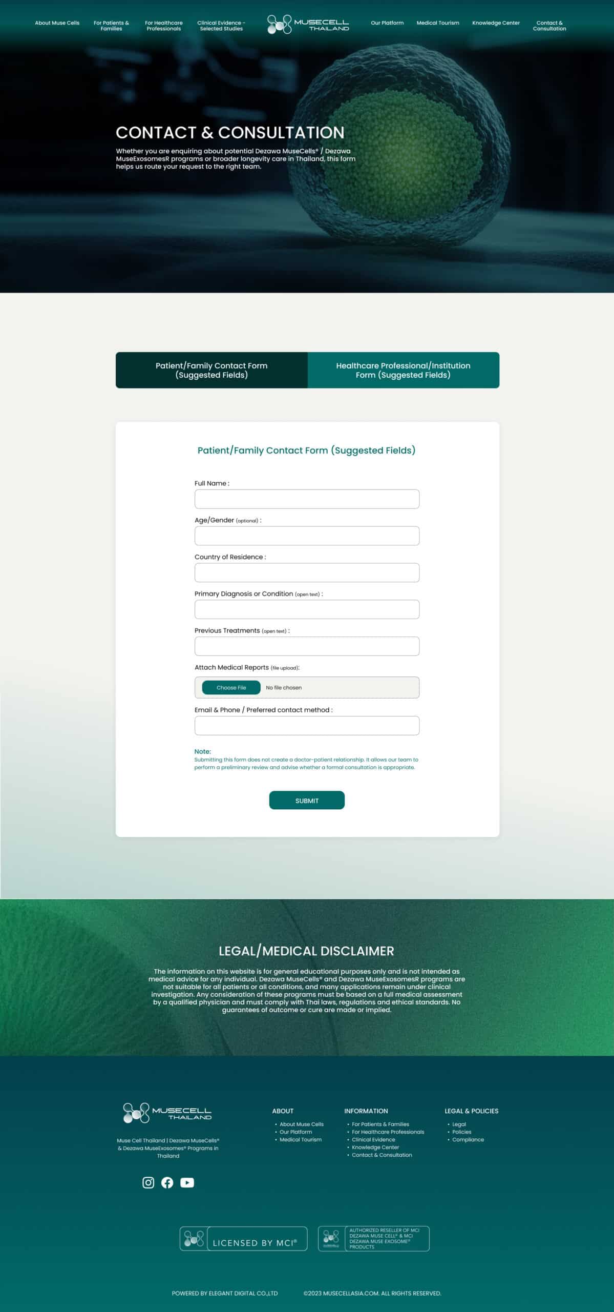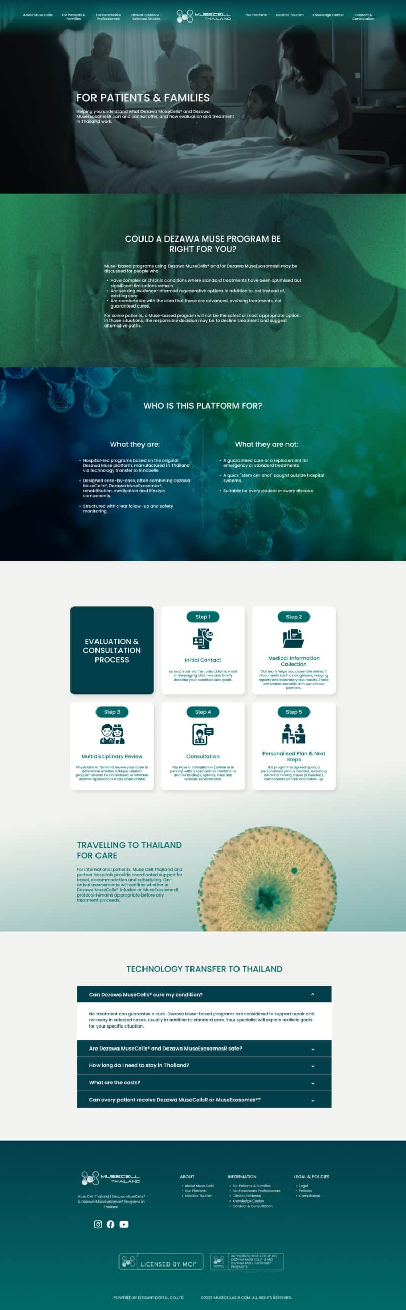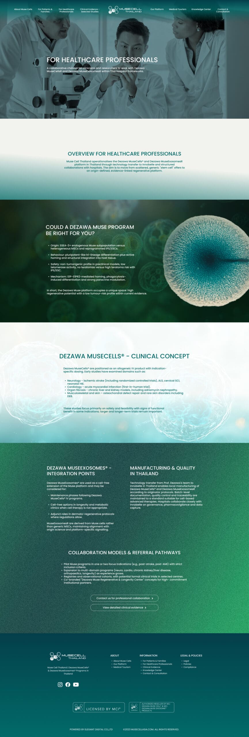 โครงสร้างเว็บไซต์เป็นแบบลำดับชั้น (Hierarchy) จัดหมวดหมู่เนื้อหา เช่น เทคโนโลยีเซลล์ การรักษา และข้อมูลองค์กร