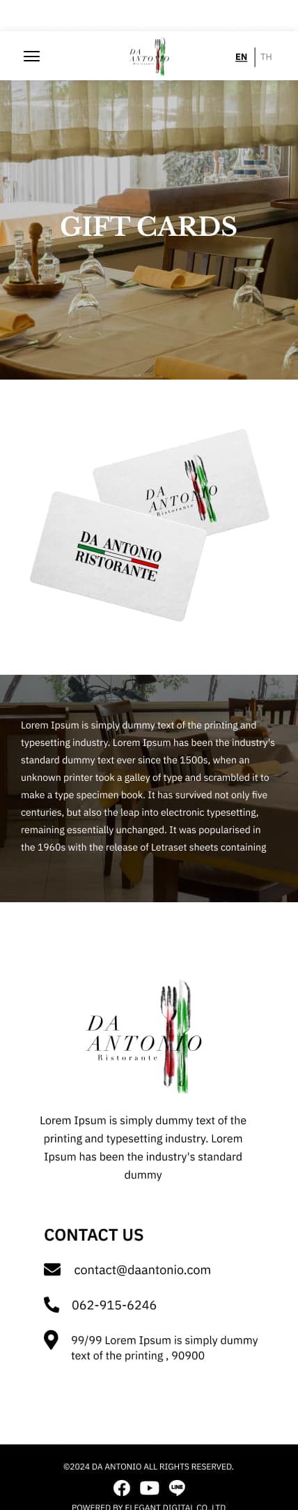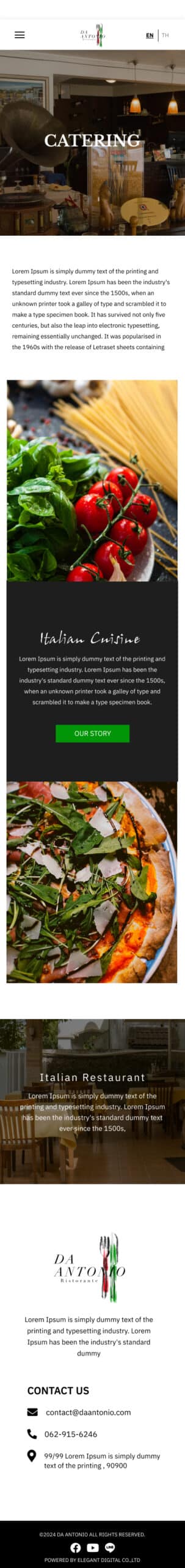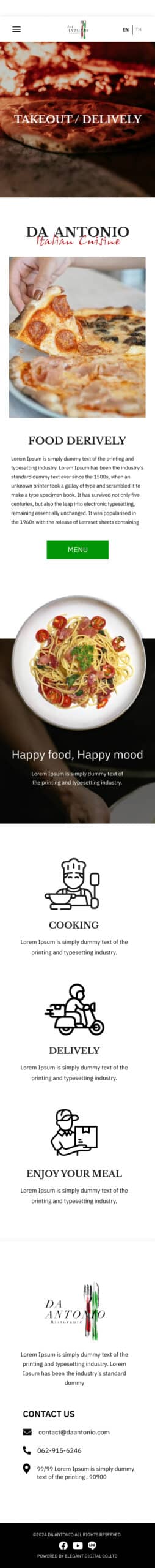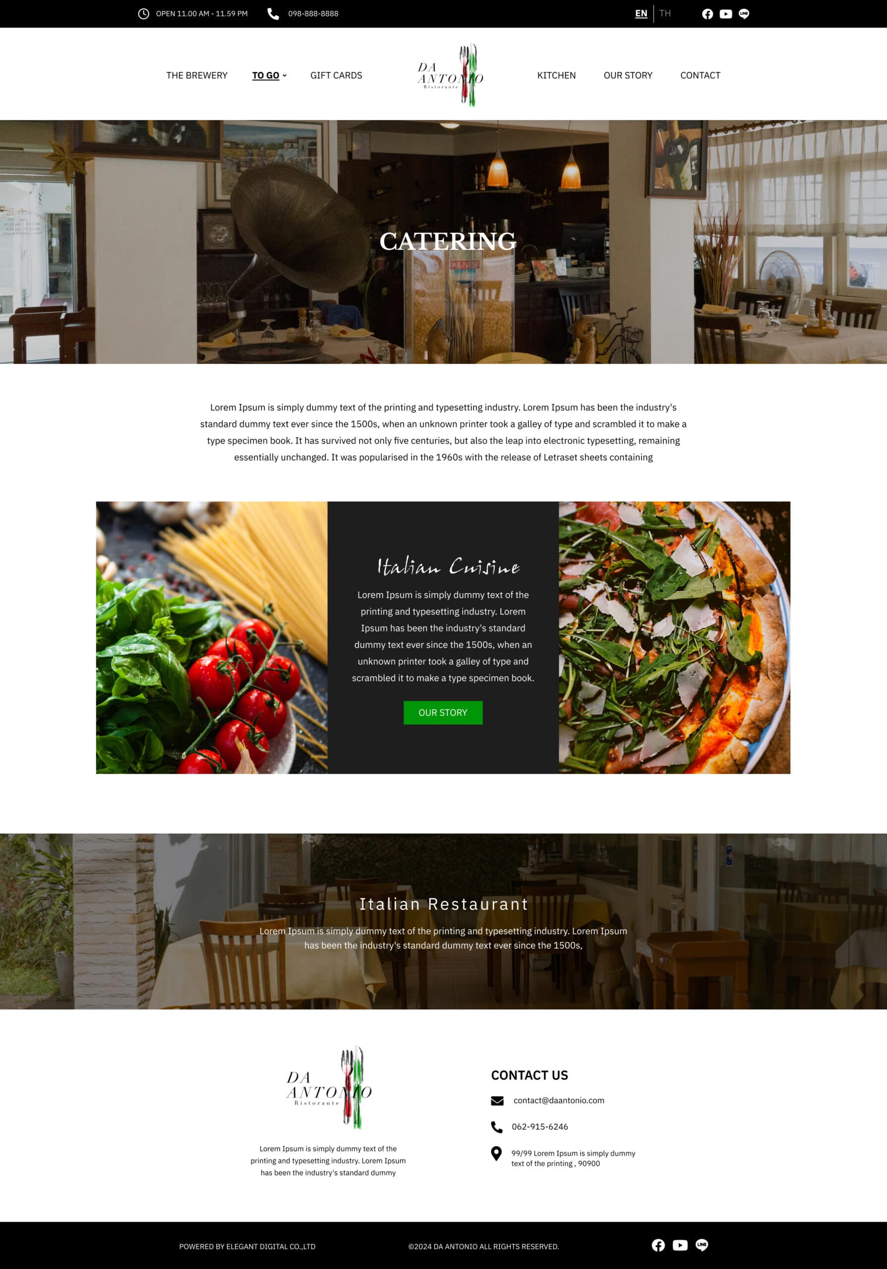 บรรยากาศร้านอาหารอิตาเลียนคุณภาพสูง ใช้ภาพใหญ่และพื้นที่สีอ่อนๆ เพื่อให้สายตาผู้ใช้โฟกัสที่เมนูและประสบการณ์ร้านทันที